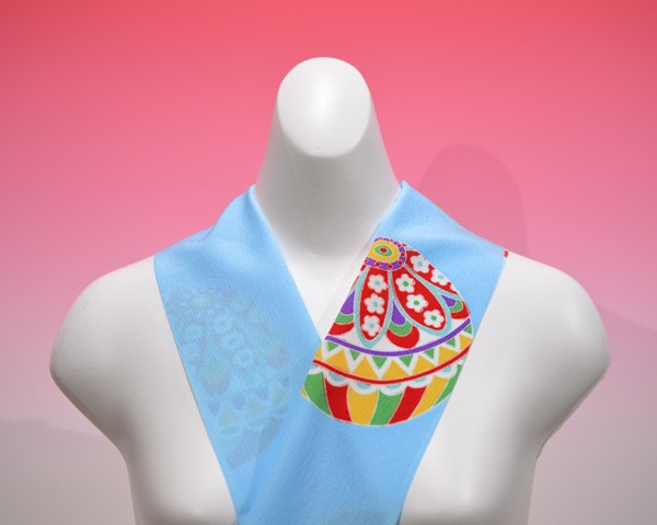 振袖用半衿 569 東レシルック 水色に大きな手毬模様 短尺 クリックポスト発送