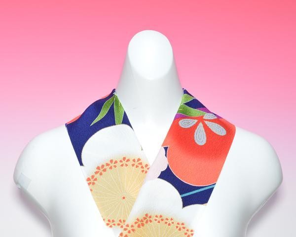 振袖用としては短尺ですので、着付けの際は左身頃上前の方に少し襟を長めに持ってきてください。