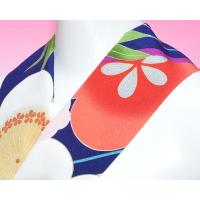 濃紺の地色に斜め縞模様と大きな梅と竹の模様が描かれています。