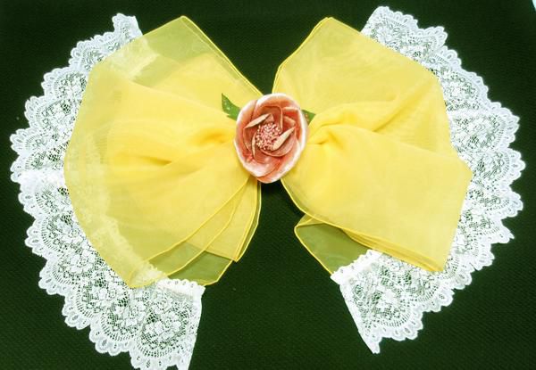浴衣用の半兵児帯です。当店の手作り品で新品です。兵児帯の上の花はついていません。お色はレモンイエローです。レース付きで、レースはギャザー入りで素材はポリエステルです。兵児帯の素材は化繊のオ-ガンジです。サイズは全長280センチ・幅43センチです。手作りのため、幅の長さが5ミリ以内の範囲で少し狭くなっている場合がありますが、使用時には差し支えませんのでご容赦ください。