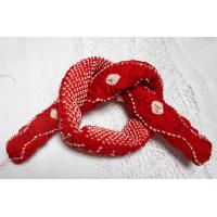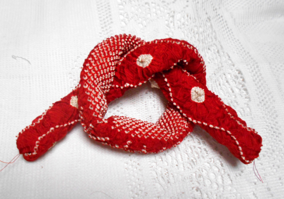 実際のお色は落ち着いた少しダークな赤に絞り模様が染められていて少しレトロな感じのお品です。