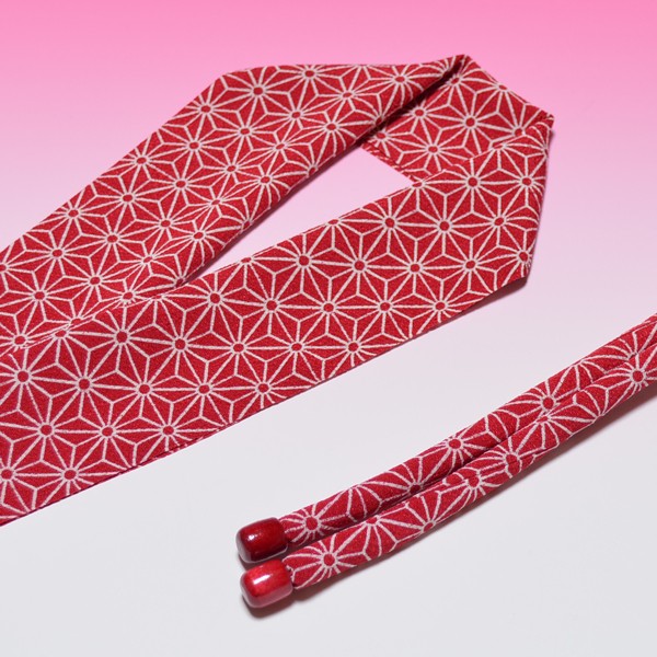 七五三 半衿・帯締めセット 女児用 二越縮緬 赤紅色 麻の葉模様 クリックポスト発送(ポスト投函 時間指定不可)
