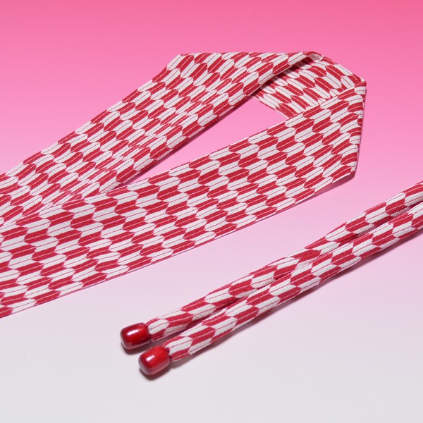 七五三用の女児用半襟と帯締めのセットです。着物地から製作いたしました。半衿はホツレ防止のため、両耳は特殊カッター、両端はピンキングはさみでカットしております。7歳から10歳位のお嬢様にお勧めです。素材は化繊の二越縮緬です。サイズは半衿が全長約90センチ・幅約12センチ、帯締めが全長120〜130センチ・幅10〜12ミリです。手作り及び総柄のため柄の出方及びサイズには多少のバラツキがありますのでご容赦ください。