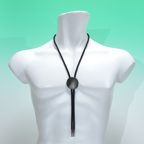 【剣先銀古美】黒蝶貝のループタイ 金具台皿ストッパー付き 紐色6色 クリックポスト発送