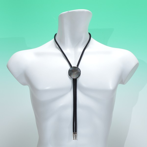 【剣先銀色】黒蝶貝のループタイ 金具台皿ストッパー付き 紐色6色 クリックポスト発送