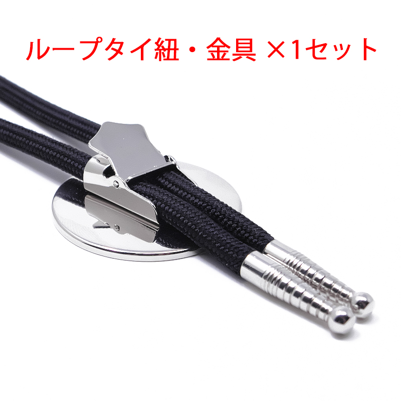 ループタイ製作用紐・金具×1セット 剣先色選択 金具大型台皿ストッパー付き 紐色は黒・紺色から選択 クリックポスト発送