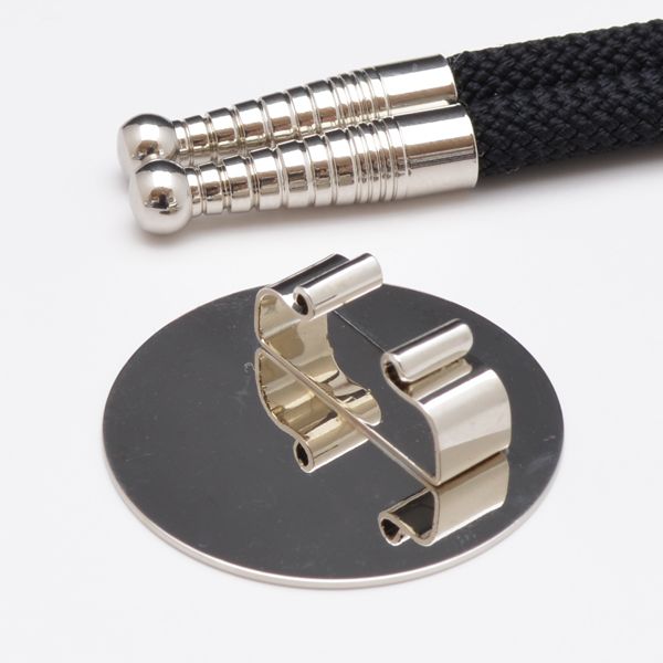 紐の固定は、紐を通した後に金具上部を強く押していただければ結構です。