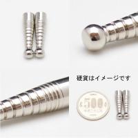 サイズは、全長25ミリ(紐を含まない)、幅3.2ミリ〜5.2ミリ、球部分直径4.8ミリです。
