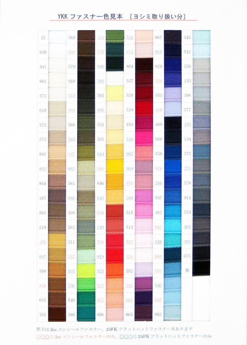 YKKファスナー色見本 2ccコンシールファスナー・25FKフラットニットファスナー兼用 全117色《メール便OK》