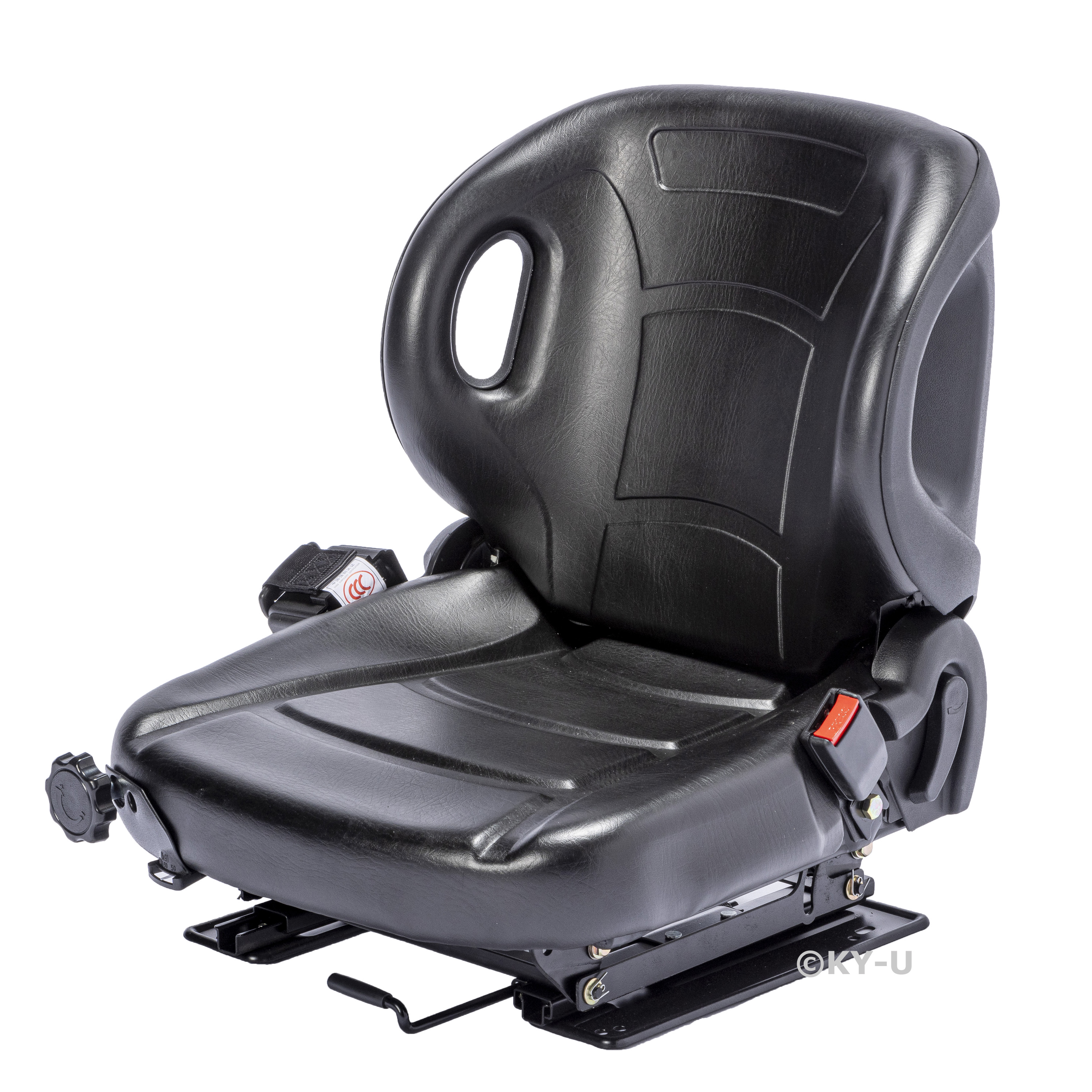 前後調節(シートスライダー)角度調節(リクライニング機能)シートベルト センサーが付いたトヨタフォークリフト用汎用シートリクライニング式ですので、お好きな角度に調節し作業していただけます