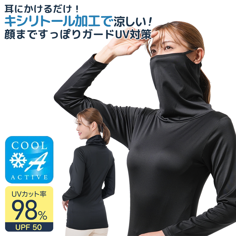 冷感 ハイネック uvカット ラッシュガード 薄手 長袖 インナー 顔 日焼け防止グッズ フェイスカバー tシャツ レディース 首 日焼け対策 タートルネック 328550