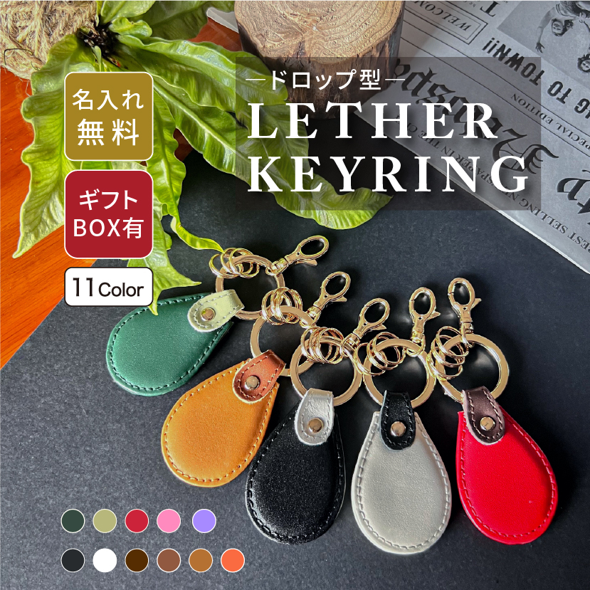 名入れ レザー キーリング キーホルダー ドロップ型 本革 革製品 おしゃれ 卒業記念 卒業祝い 名前入り ギフト 母の日 父の日 入学祝い 就職祝い 退職祝い