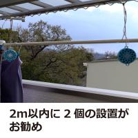 ![]() | ◆2m以内に2個の設置がおすすめです。 ※効力は鳥の種類や設置状況によって変わることがあります。必要に応じて設置数を決めてください。 |