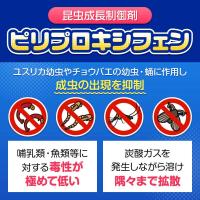 有効成分ピリプロキシフェン配合 昆虫成長制御剤ピリプロキシフェンが、ユスリカ幼虫やチョウバエの幼虫・蛹に作用して変態を抑制し、成虫の出現を抑えます。 高い安全性 哺乳類、魚類、その他有用動物に対する毒性が極めて低い薬剤です。また、臭いや色もほとんどなく安心してお使いいただけます。 優れた拡散性 発泡性の基材を用いて錠剤化しているため、水中に投入すると炭酸ガスを発生しながら溶け、隅々まで拡散します。 |
