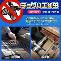 ◆1錠は0.5gの超小型の製剤ですので、人工容器、雨水枡、側溝、水槽、水溜りなどの水量の少ない水系の発生源に最適です。 【対象害虫別 使用方法及び使用量】 ◆ユスリカ幼虫 [適用場所:人工容器、雨水枡、側溝、水槽、水溜り] 水量30〜40L当り、スミラブ発泡錠EL 1錠を投入する。 ◆チョウバエ幼虫 [適用場所:浄化槽、汚水槽] 汚水表面250㎠あたり、スミラブ発泡錠EL 1錠を適量の水に溶かして散布する。 ※水量の少ない場所に散布する場合には、バケツなどに約1Lの水を入れ、適量の薬剤を溶かしてから、ジョウロや柄杓で発生源の水域全体に散布してください。 |