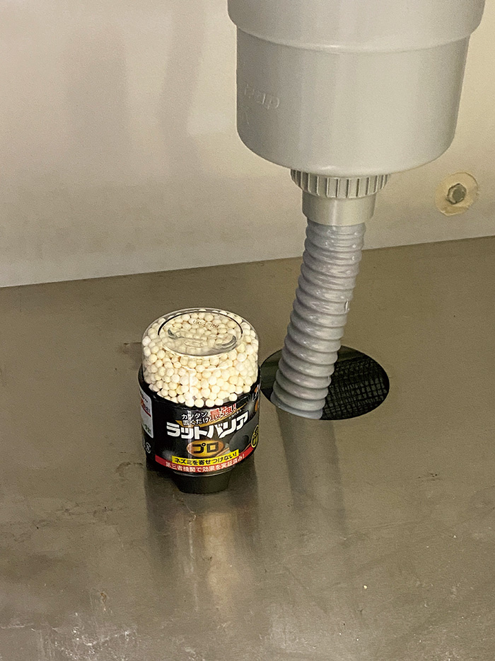 ◆容器のフタを開け、フタの内側にあるアルミパッキンを取り外してください。 ◆フタを閉めて、ネズミの被害場所(床下、通路、物置など)に置いてください。 ※35℃を超える環境では持続期間が短くなります。また、−5℃を下回る環境では効果範囲が狭くなる恐れがあります。推奨温度範囲での使用をおすすめします。結露が発生すると容器内のスポンジが水分を吸収して効果が大幅に低下する恐れがあります。 |