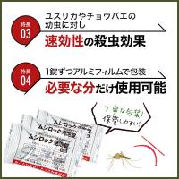 ◆発泡錠が有効成分を効果的に拡散。 ◆安全性が高く、環境への影響の少ない成分(エトフェンプロックス)が素早く効果を発揮。 ◆ユスリカやチョウバエの幼虫に対し、速効性の殺虫効果。 ◆1錠ずつアルミフィルムで包装されているため、必要な分だけ使用可能。 |