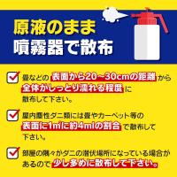 ![]() | 屋内塵性ダニ類には、畳やカーペット等の表面に1平方メートルに約4mlの割合で散布して下さい。 |