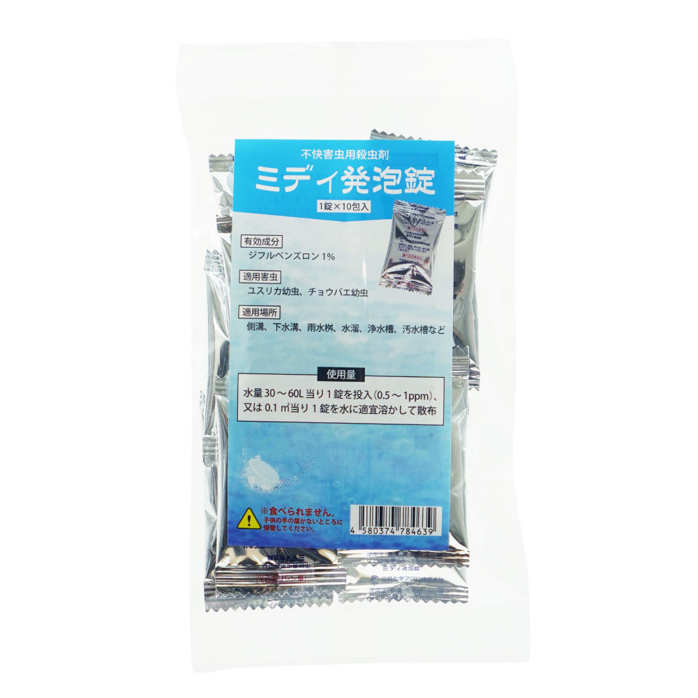 【対象害虫】 ◆ユスリカ幼虫 チョウバエ幼虫 【適用場所】 ◆側溝、下水溝、雨水枡、水溜、浄水槽、汚水槽など ![]() |