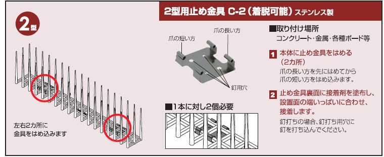 ハトよけ バードレスマット2型取付2セット バードレスマット1型 取り付け金具C-1