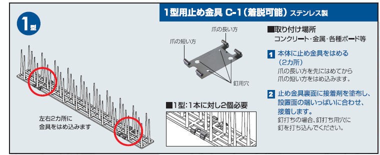 ◆専用止め金具は本体の着脱・取替えが簡単に行えます。 ◆大幅スピードアップとコストダウンが可能です。 ◆ステンレス製のため耐久性に優れています。 |