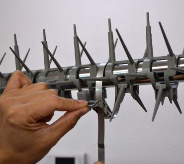 ◆直径30〜50mmのパイプ状の場所に上からはめ込むだけの簡単設置。 ※直径30〜35mm、45〜50mmのパイプ類に設置する場合は、落下防止のため、別売りのステンレスバンドを使用して下さい。 ◆耐久性抜群(屋外耐候テスト10年クリア)。柔軟かつホールド力を維持できる厳選素材で着脱の繰り返しが可能です。 ◆湾曲したパイプなどにも柔軟にフィット!ねじれなどにも追従する特殊構造。 ◆電力会社様では電線保護管などに使用されています。 ◆安心信頼の日本製です。 | ||