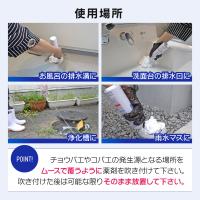 ◆使用前に缶を必ずよく振ってからノズルを下にして使用して下さい。新タイプの昆虫成長制御剤とピレスロイド系殺虫剤の効果で、成虫と幼虫に対し確実な効果を発揮します。 ◆チョウバエやコバエの発生源となる場所を、ムースで覆うように薬剤を吹き付けて下さい。吹き付けた後は可能な限りそのまま放置して下さい。 |