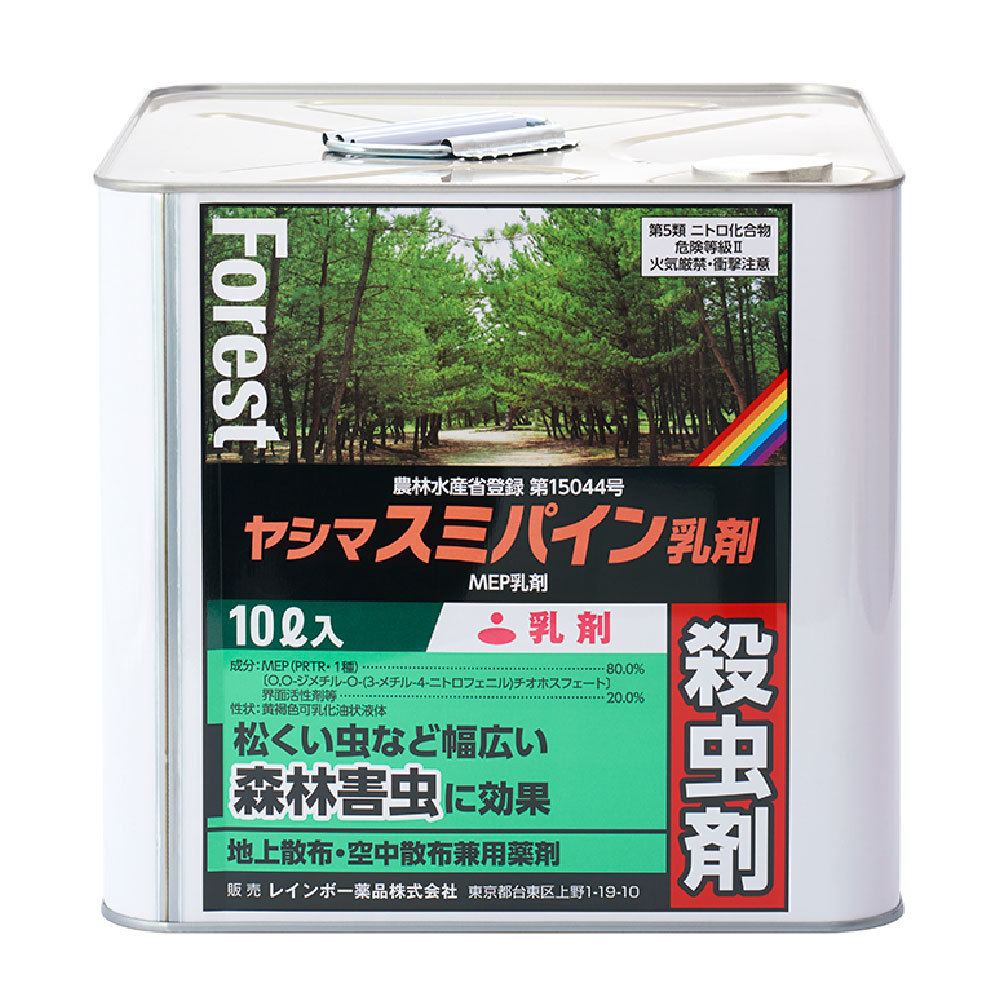 ◆ヤシマスミパイン乳剤は、有効成分と乳化剤で製造されている薬剤です。従来の乳剤は、難水溶性の有効成分を親水和性にするために、有効成分と乳化剤の他に有機溶剤が製造上必要でした。しかし、乳化剤(界面活性 剤)の進歩により、有機溶剤を使用しなくても良質の乳剤を製造することが可能になりました。この技術を応用してヤシマスミパイン乳剤は作られています。 ◆ヤシマスミパイン乳剤一つで、松くい虫防除(ヘリコプター散布、無人ヘリコプター散布、地上散布などの予防、枯損木の伐倒木駆除など)や、森林害虫、緑化樹の害虫駆除の専用薬剤として広く使用できます。 |