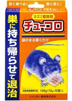 1.3〜5日間継続して食べさせることにより効果を発揮する殺鼠剤です。(個体差により、さらに日数を要する場合があります)。