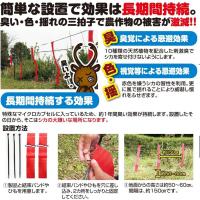 赤色を嫌うシカの習性を利用。更に風で揺れることにより威嚇し慣れをふせぎます。