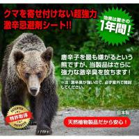 簡単な設置で効果は長期間持続。 臭い・色・揺れの三拍子で農作物の被害が激減!! ◆臭覚による忌避効果 10種類の天然植物を配合した刺激臭でクマを寄せ付けないようにします。 ◆視覚等による忌避効果 黒色を嫌うクマの習性を利用。更に風で揺れることにより威嚇し慣れをふせぎます。 ◆長期間持続する効果 特殊なマイクロカプセルに入っているため、約1年間臭い効果が持続します。設置したその日から、そこはクマの大嫌いな場所になります。 ◆簡単な設置 結束バンドやひもで既存のネットや柵に吊るしたり、ロープに吊るしたりで、誰でも簡単に設置できます。 ![]() ![]() |