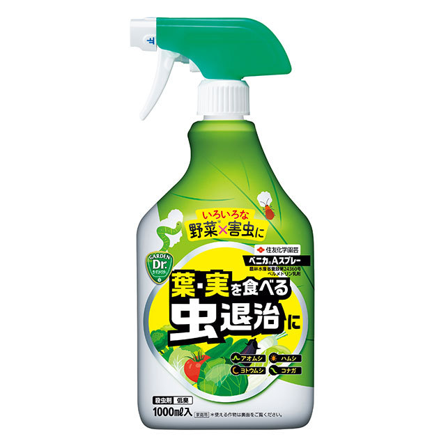 ◆植物を食べる虫や群がる虫をすばやく退治! ◆秋冬野菜、春夏野菜、果樹、花、観葉植物、庭木などいろいろな作物に一年中使えます! ◆ピンポイントで集中噴霧、ワイドな霧でムラなく散布できる切り替えノズル採用 ◆収穫前日まで使える(トマト・なす・きゅうりなど) |