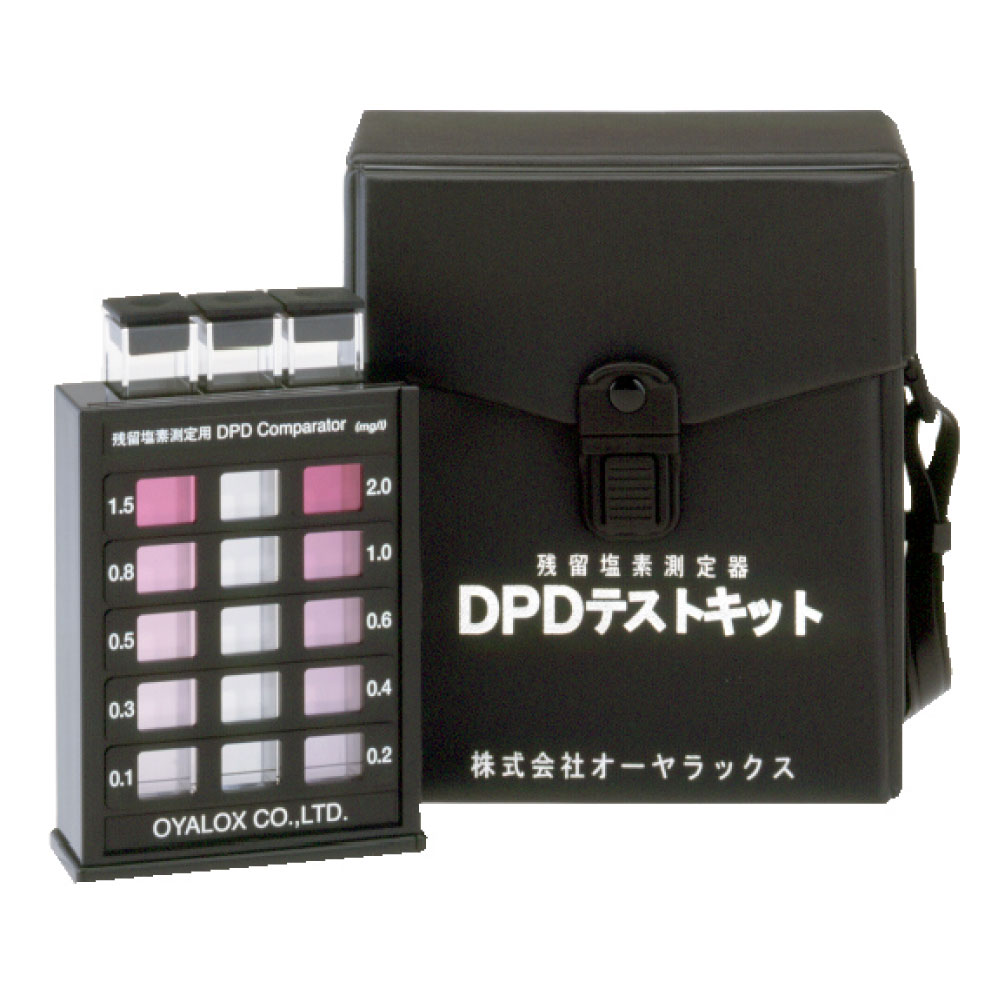DPDテストキットは、DPD試薬を用いて、水中の残留塩素濃度を0〜2.0mg/Lの範囲で求めることができる測定器です。 また、別売の比色板と試薬を使用することによって、有効塩素濃度や水素イオン濃度の測定ができます。 飲用水、プール水、浴槽水、食品工場や調理施設の使用水等の衛生管理や、器具・環境等の殺菌消毒に用いる次亜塩素酸ナトリウム希釈液の濃度管理等で活躍します。 【測定原理】 本器は、残留塩素を含有する水にDPDプラス (N,N-ジエチル-p-フェニレンジアミン硫酸塩ー緩衝剤混合試薬)を作用させることにより、遊離残留塩素濃度に応じた淡桃色〜桃赤色を呈する反応を応用しています。 発色した検水を標準比色板と比較することによって、遊離残留塩素濃度を0mg/L〜2.0mg/Lの範囲で測定することができます。 ◆一剤式試薬「DPDプラス」を使用して簡単、スピーディに測定ができます。 ◆「DPD No.3 試薬」を使用して総残留塩素濃度も測定できます。(測定範囲:0〜2.0mg/L) ◆比色板補正用テストチューブに検水を入れることにより、検水の水質(濁度、色など) の誤差を補正できます。 ◆比色板、背面板を取り外して洗浄できるため、清潔に保ち、正確な測定ができます。 |
