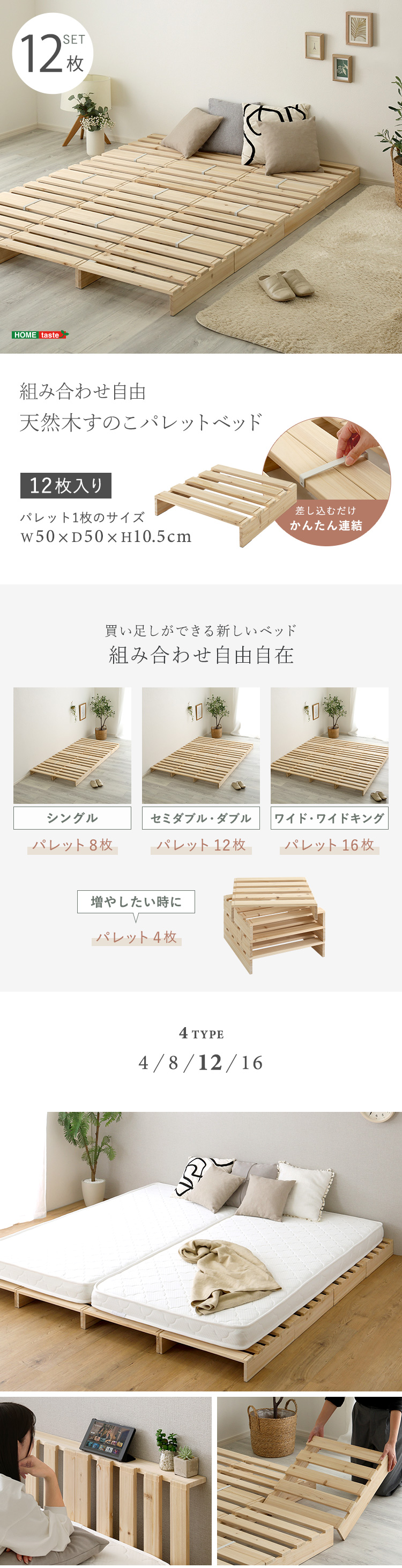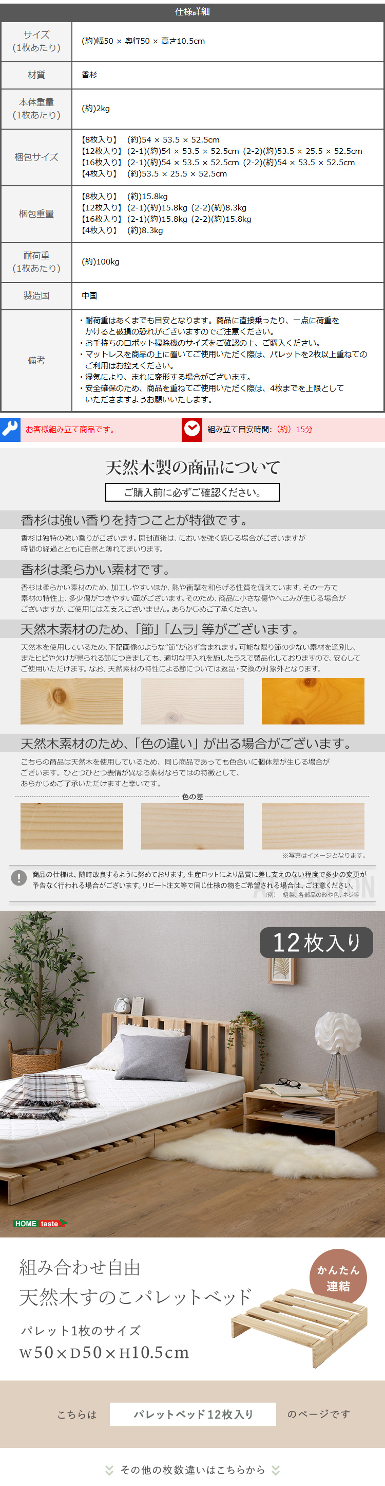 組み合わせ自由! 天然木 すのこパレットベッド 12枚入り bakugai202604