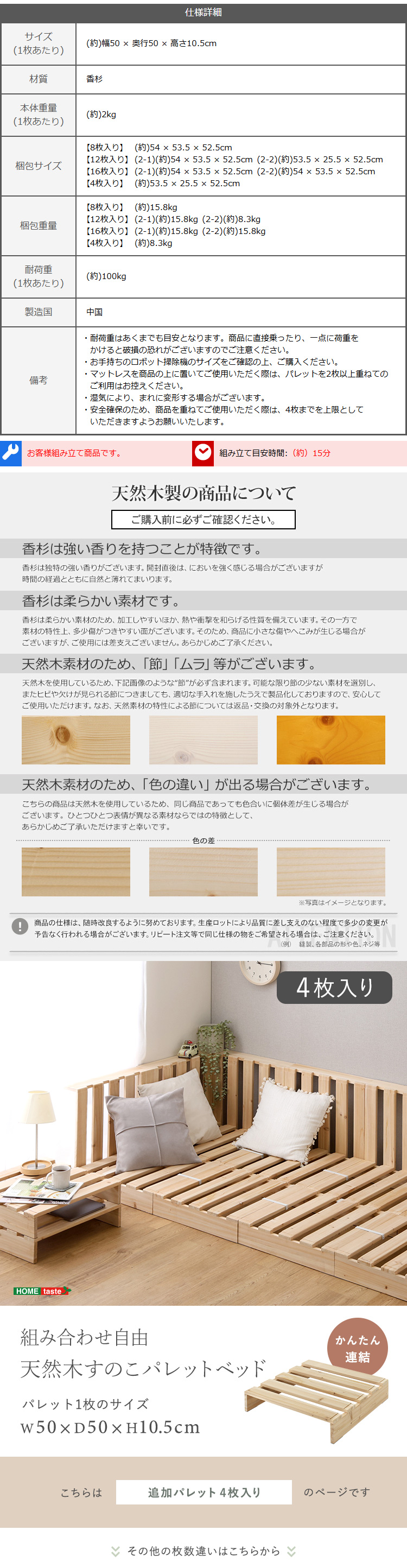 組み合わせ自由! 天然木 すのこパレットベッド 4枚入り bakugai202604