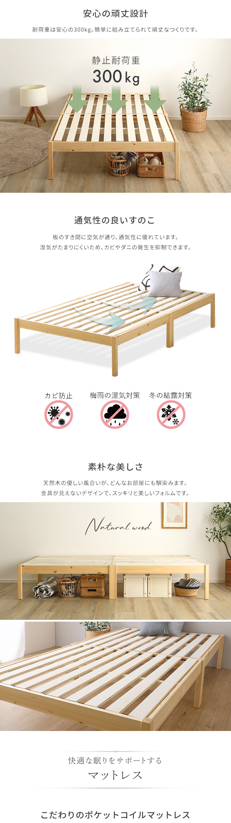 2分で完成!組立簡単ベッド ハイタイプ ポケットコイルマットレスセット(セミシングル) bakugai202604