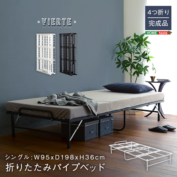 折りたたみパイプベッド 4つ折り 折りたたみ 折りたたみベッド パイプ パイプベッド 完成品 ※マットレス別売り スチール製 通気性 快適 コンパクト 一人暮らし