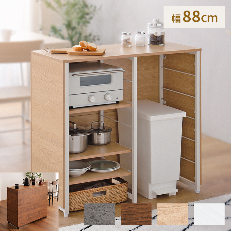 キッチンカウンター 90 幅88cm 間仕切り レンジ台 食器棚 レンジラック キッチンボード 収納棚 ゴミ箱 収納ラック 間仕切り キッチン収納 おしゃれ おすすめ