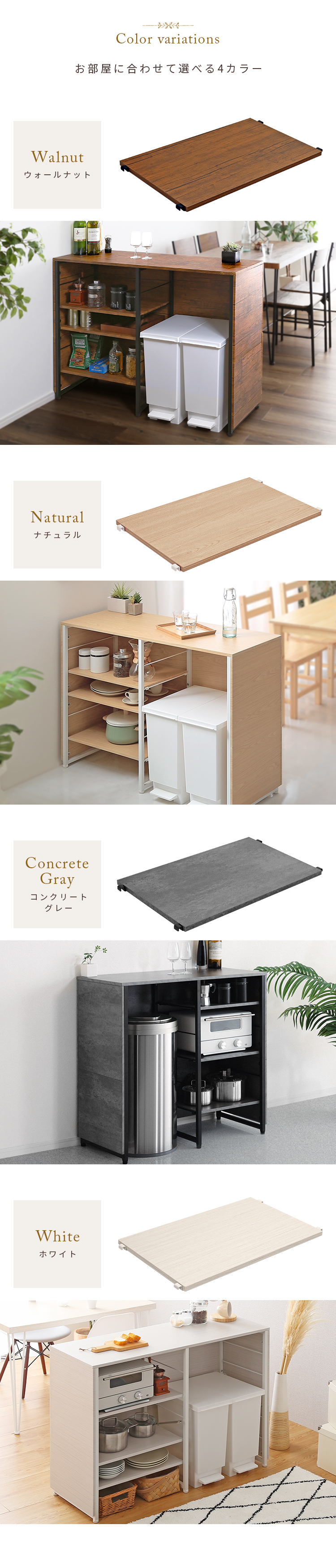 別売 88cm幅 キッチンカウンター 可動棚 3枚