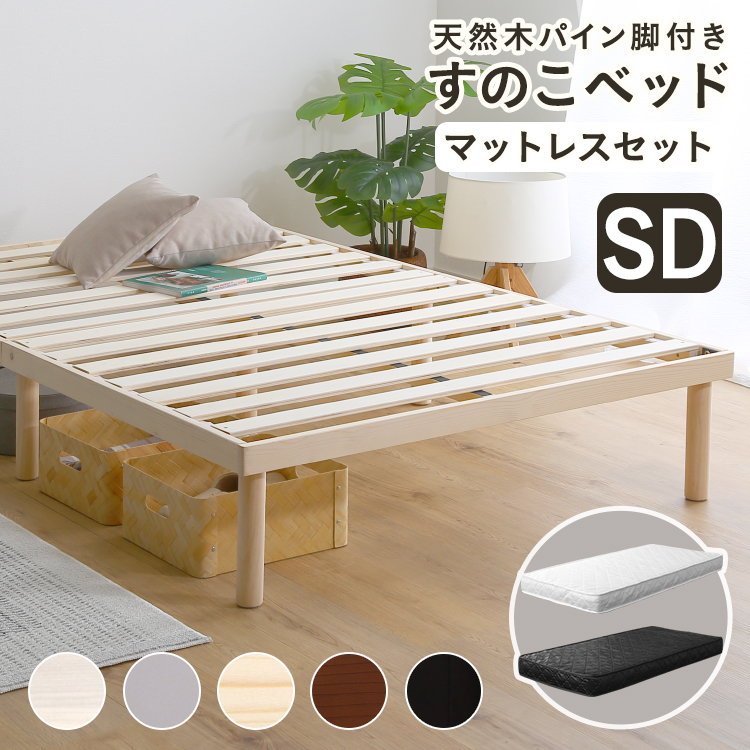 すのこベッド セミダブル SD 天然木 脚付き ロータイプ ベッド 天然木 北欧パイン ベッドフレーム すのこ ローベッド モダン ナチュラル マットレスセット
