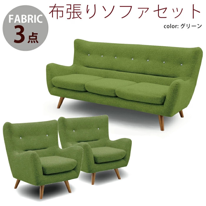 法人宛 送料無料 応接ソファセット ソファ ソファーセット 1人掛けソファ×2台+3人掛けソファ 幅182cm ファブリック 応接セット 応接ソファーセット グリーン