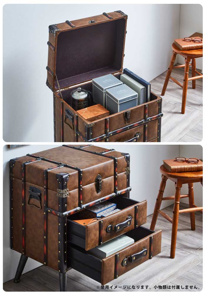 ■アンティークトランク風デザインのおしゃれなチェストのご紹介です。 【寸法】幅50×奥行39.5×高さ59.5cm | |