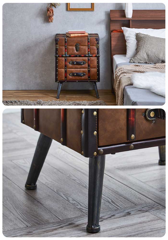 [キーワード] 男前デザイン スチール脚 サイドラック ビンテージ調 カッコイイ シンプル トランク風 トランクケース風 カバン風 鞄風 バッグ 鋲打ち オールドレザー風 可愛い キュート オシャレ レトロモダン 英国風 留め金具 パッチン錠 パチン錠 スナップ錠 旅行かばん風 ディスプレイ ユニーク アタッシュケース風 レトロデザイン
