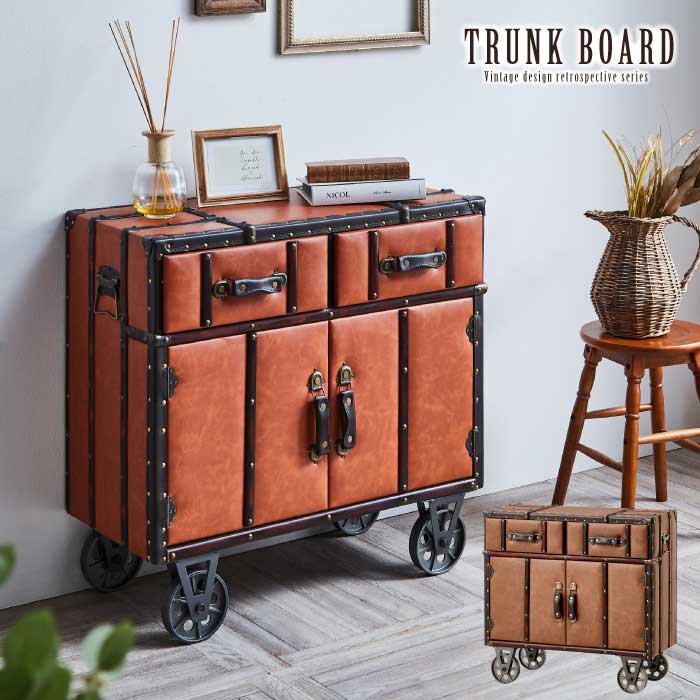 ■アンティークトランク風デザインのおしゃれなサイドボードのご紹介です。 【寸法】幅82×奥行36.5×高さ80cm | |