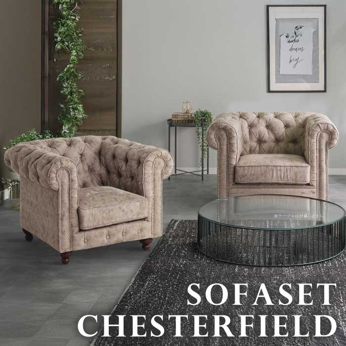 [1304P] チェスターフィールド ソファセット ( 2P +1P ) BE 《2-佐260*2-32s》