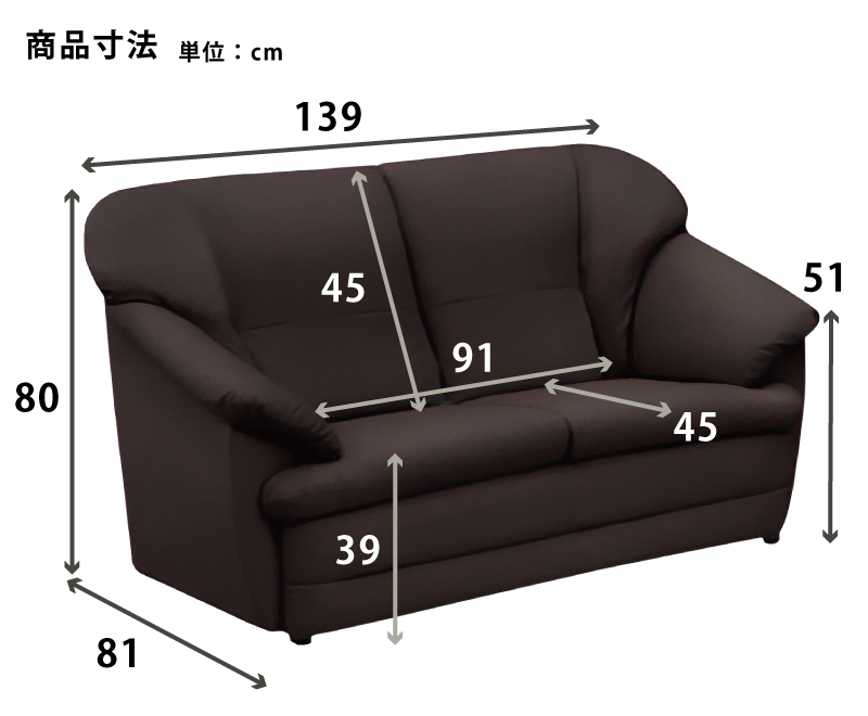 【寸法】2pソファ:幅139×奥行81×高さ80(座面高さ39)cm
