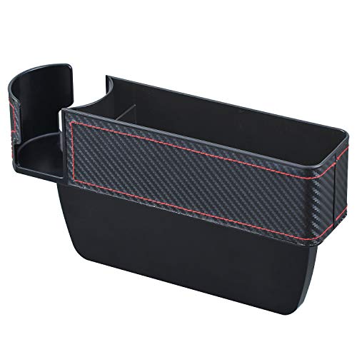 カーボン柄×REDステッチのシートオーガナイザードリンクからスマートフォン、電子タバコ、スマートキーなどまとめて収納できる車用の収納スペース。