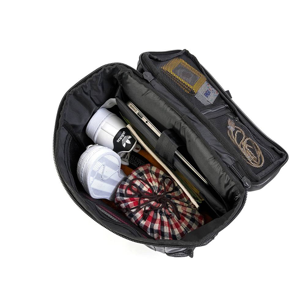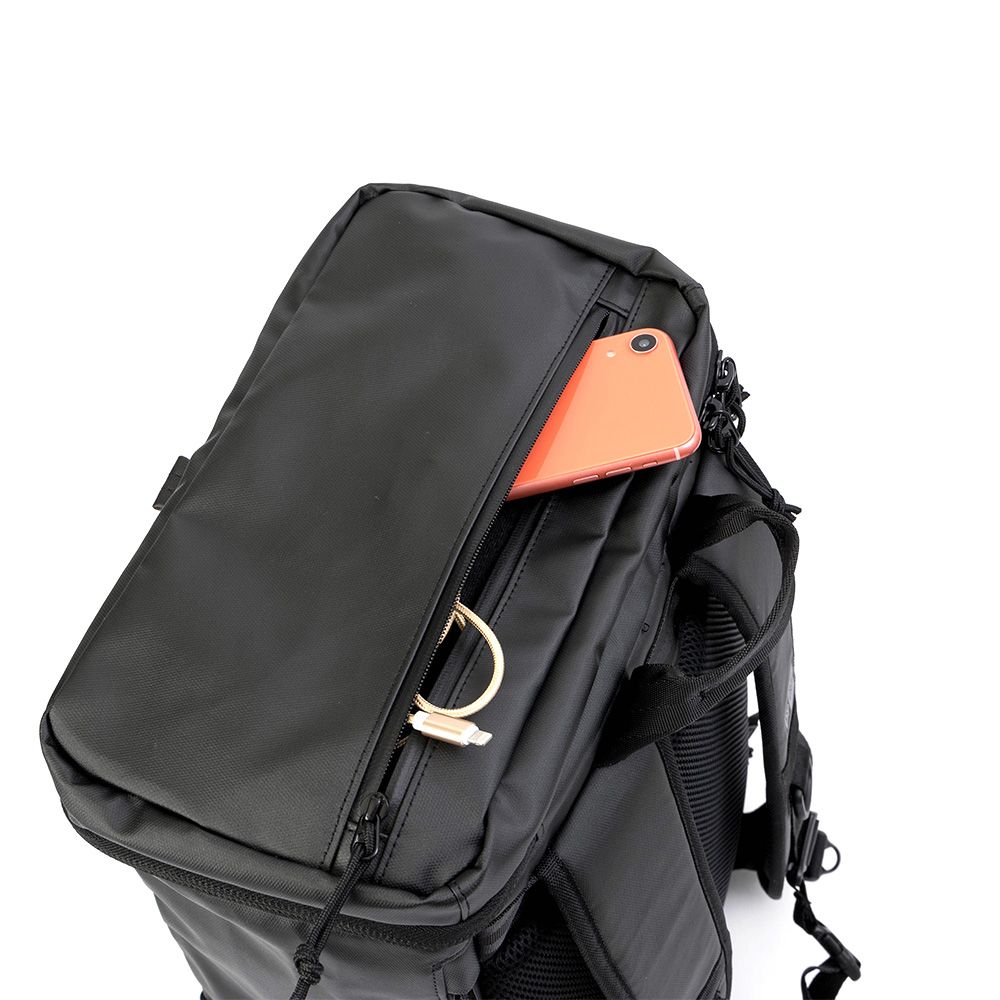前面と上面にはファスナーポケット、側面にはメッシュポケットとマジックテープポケット、メイン収納部にも大小のポケットを装備。収納箇所が豊富であらゆるニーズに対応できます。