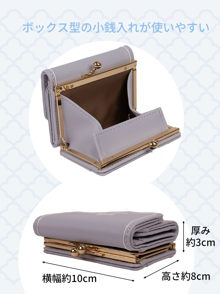 ■小銭入れはがま口開閉で中身を見渡せるボックス型になっています。バッグの収まりがいいコンパクトな三つ折り財布です。