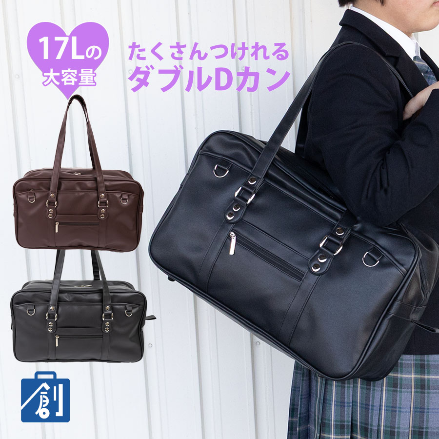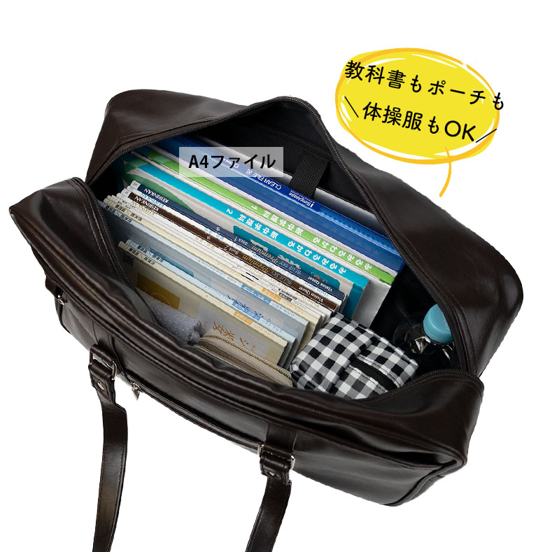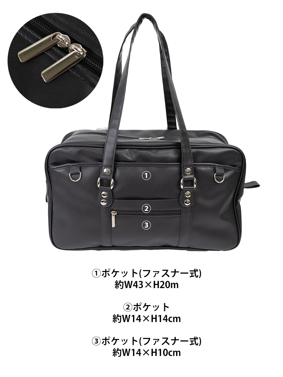 ■大人気のボストン型スクールバッグです。高級感がありおしゃれな合皮タイプ。制服、ローファーにも可愛くマッチします。